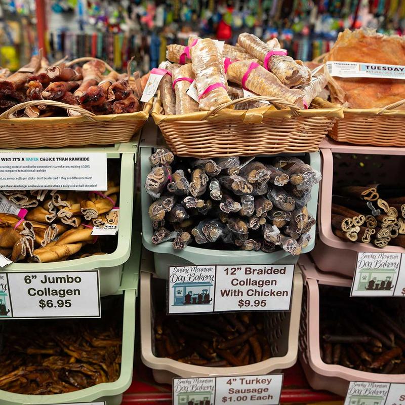 Thanks for visiting us online! The Smoky Mountain Dog Bakery creates a variety of fresh baked decorated and dog treats and sells unique collars, leashes, toys, chews and other items for dogs (and cats) of all breeds and sizes.